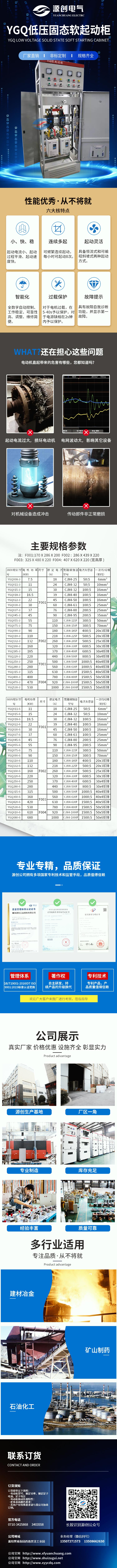 YGQ系列固态软起动器是在电机定子回路中串入可控硅,并根据电机功率和负载状况,通过调整可控硅的导向角,将电机的起动电流控制在设定值上,进而实现电机的恒流软起动。适用于建材、冶金、矿山、化工、石油、供水、供暖、制药等各行业400KW以下交流三相异步电动机的降压起动和节能控制。